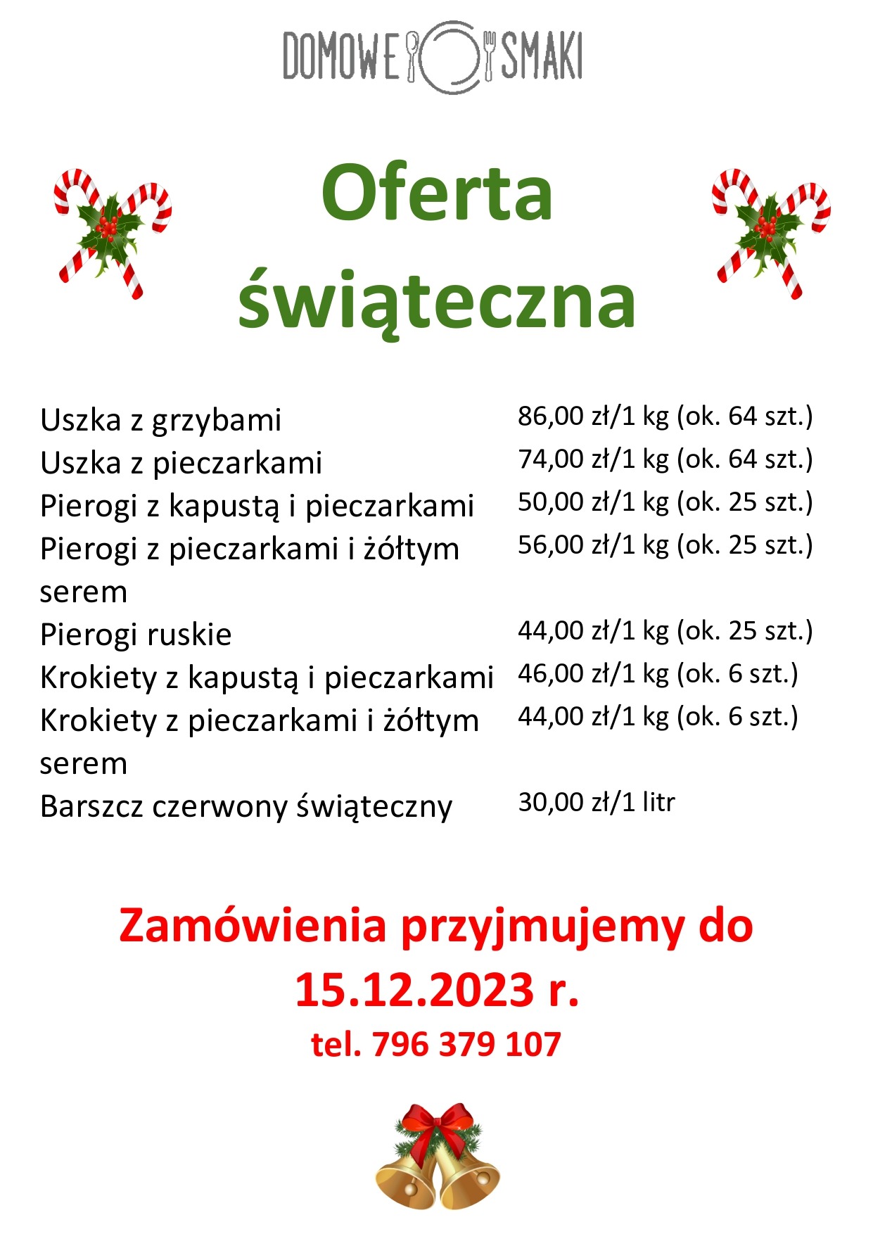 Zamówienia na Ofertę Świąteczną proszę składać w lokalu.